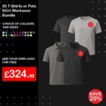 - 50 T-Shirts Or Polo Shirts Workwear Bundle – With Front Logo Embroidered