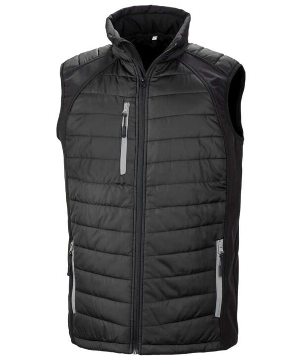 On-trend padded plus softshell combination. Supersoft, lightweight and warm. Ready to brand. Quiet to wear. Contrast colour pocket zips. Full front zip with chin guard. Stand-up padded collar. Padded body. Soft bound armhole. Black zip pulls. Hangtag.