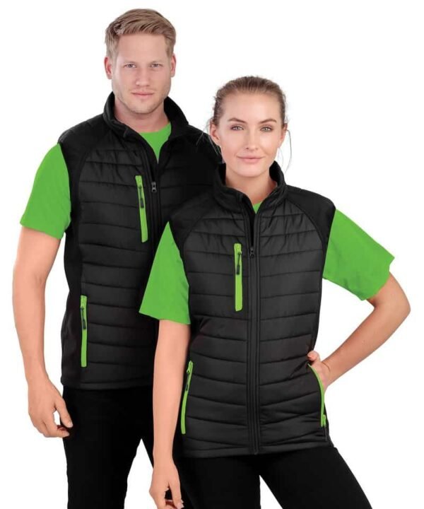 Fabric: Fabric: 100% polyester. Filling: 100% 160gsm REPREVE ® recycled polyester. Lining: 100% Polyester. Panel: 280gsm 2-layer mechanical yarn softshell comprising: Outer-Layer: 40% TOPGREEN® recycled polyester, 60% Polyester. Inner-Layer: 30% TOPGREEN® recycled polyester, 70% Polyester microfleece.