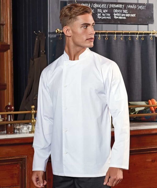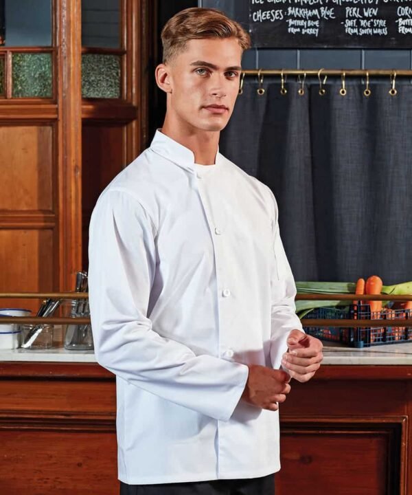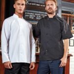 A durable long sleeve chef’s jacket that fastens down the right hand side of the body with five long life resin buttons. On the upper left sleeve there is a handy double pocket pen compartment. This jacket is styled with a mandarin collar and is available in Black and White and offers great value for money. View Specification