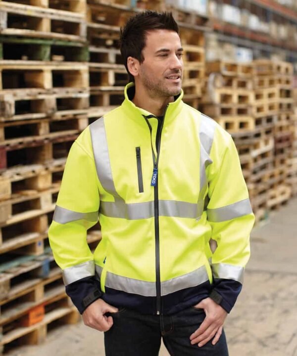 Hi-Vis Yellow & Hi-Vis Yellow/Navy, Orange and Orange/Navy conform to EN ISO20471:2013 Class 3. Orange and Orange/Navy conform to RIS-3279-TOM & approved for the railway industry. Black and Navy provides enhanced visibility. 3 layers softshell fabric ensures 8000mm breathable & 3000 mvp waterproof. Outer layer: 100% polyester. Middle layer: TPU membrane. Inner layer: 140D warm & comfort microfleece. 5cm width reflective tapes around the body and arms, one over each shoulder. 100% waterproof zippers & branded zipper pullers applied to the front and chest pocket. 2 hand warmer pockets with zipper fastening. Rubber cuff adjusters & draw cord hem adjuster. Shaped lower back for style. Navy contrast helps to provide a corporate image and hide scuff marks.