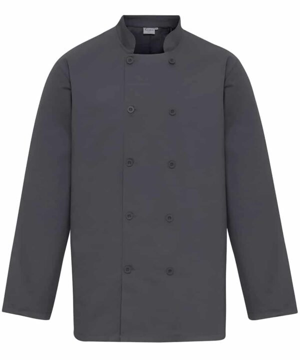 An easycare long sleeve chef’s jacket with a ten button wrap over style fastening. To withstand the demands of repeated washing, the buttons are long life resin buttons. A very smart jacket for chef with a mandarin collar for a streamlined look. The left sleeve features a useful pen pocket. Available in black and white and in a wide range of sizes. View Specification