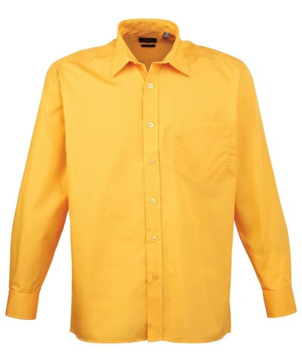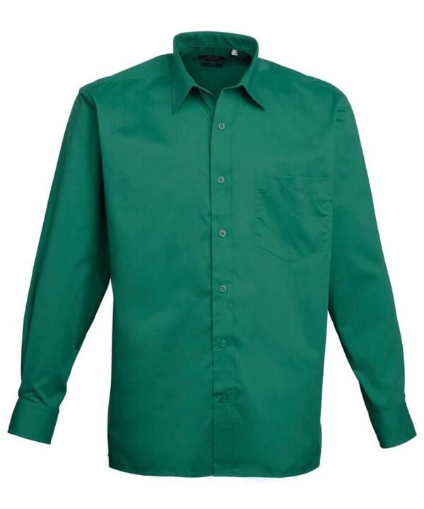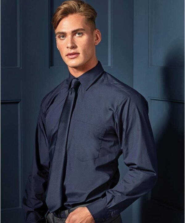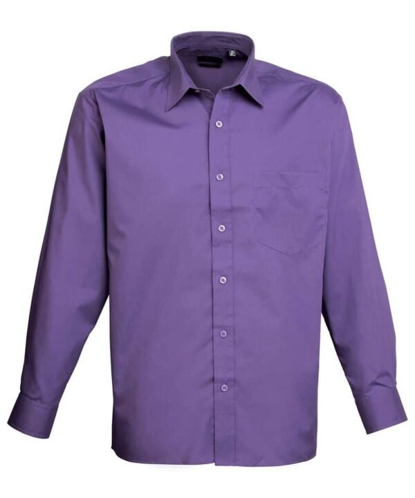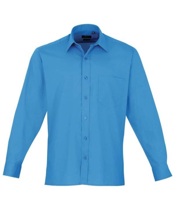 A men’s long sleeved classic fit Poplin shirt available in 30 colours from the Premier ‘Colours Collection.’ This classic work shirt has a stiffened formal cut collar which accommodates a ties perfectly. The left breast pocket and self-fabric buttons down the placket and cuffs makes for a smart and stylish everyday shirt which carries Premier’s easy care label.