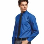 A men’s long sleeve Poplin shirt available in thirty colours. This classic work shirt has a stiffened formal cut collar and a left breast open mitred pocket. The long sleeve style has button fastened cuffs making for a smart and stylish shirt.