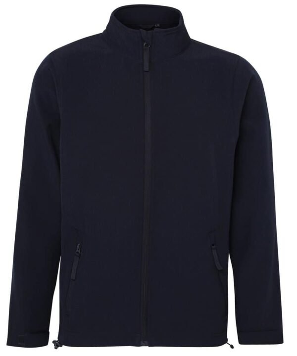 Two layer bonded softshell jacket with full zip front fastening. Relaxed fit. Two front zipped side pockets. Chin guard with internal storm flap. Adjustable shockcord hem.