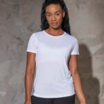 Classic crew neck T with girlie fit. Featuring high performance wicking fabric, crew neck and smooth fabric face.
