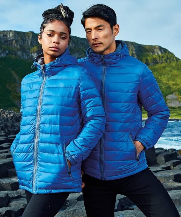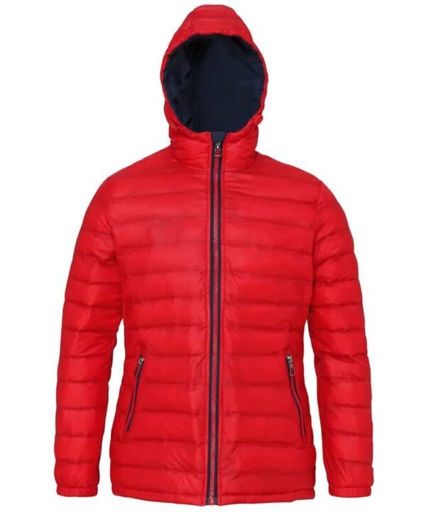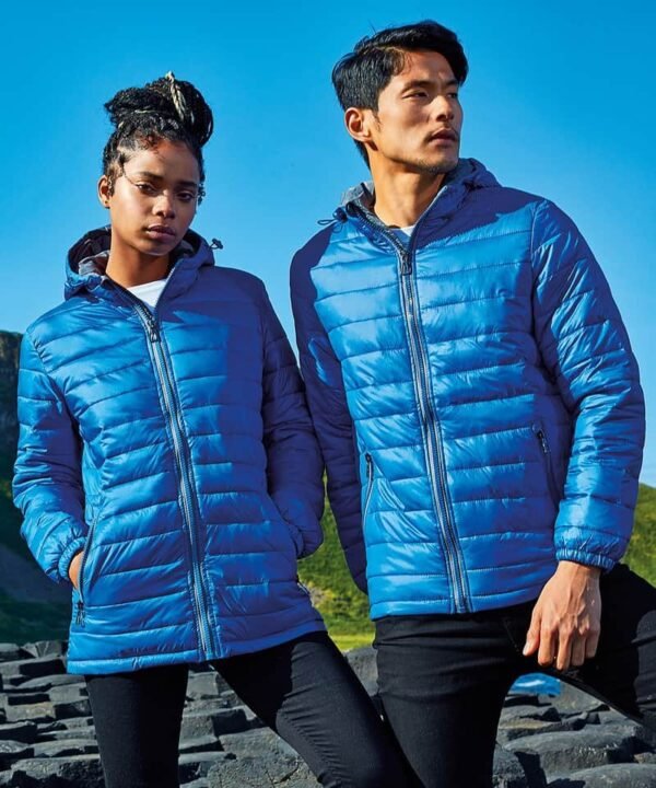 Contrast coil zip on centre front with signature zip puller and internal storm flap and chin guard. Quilted horizontal stitched narrow baffles. Fully-lined in contrast polyester. Coil zip on centre front in contrast colour with internal storm flap and chin guard. Signature zip pullers in black silver finish. Self elasticated cuffs. Contrast coil zip pockets with zip garages. Internal secure zipped double jetted chest pocket. Internal lower body secure pocket. Adjustable shockcord channel at hood opening. 228gsm lightweight polyester fill. Internal back neck hanger loop. Internal zipped opening for embroidery access. Smartphone friendly – internal shockcord loop for headphone wire attachment.